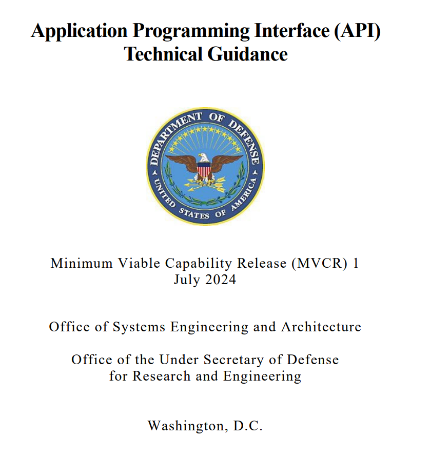 在快速发展的现代战争中,美国国防部(DoD)依靠技术进步来保持联合作战能力的竞争优势。这些进步的核心是软件应用程序接口(API)。API 是 “一个系统接入点......可从应用程序访问......提供定义明确的功能”(NIST SP 1800-21)。API 促进了互操作性、安全性和可扩展性。互操作性是 “为实现战术、作战和战略目标而采取一致、有效和高效行动的能力”(CJCSI RSI 2019),是联合参谋部的首要任务(Brady 和 Dianic 2022)。互操作性对于现代软件、联合作战、人工智能(AI)优势以及实现国防部副部长数据法令(DepSecDef 2021)至关重要。API 对互操作性至关重要(Brady 和 Dianic,2022 年)。API 可促进数据共享、协作以及国防部内部不同部门和单位之间以及与盟国(如北约)之间系统和能力的无缝集成。应用程序接口的其他关键概念包括传感器融合和军事物联网(IoMT)操作集成、新兴技术采用、快速原型设计和实验、生态系统开发和创新,以及关键技术和新兴技术的保护。应用程序接口有助于不同软件系统之间的无缝通信,并能创建复杂的集成应用程序。应用程序接口的可组合性允许将众多功能迅速组合成新的独特功能。负责研究与工程的国防部副部长办公室(OUSD(R&E))系统工程与架构办公室(SE&A)与负责采购与维护的国防部副部长办公室(A&S)以及一个由联合全域指挥与控制(JADC2)和 20 多个国防部部门组成的团队合作,领导了本文档的开发工作。