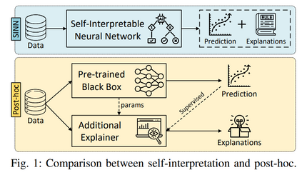 在过去的十年中,神经网络在解决各个领域的复杂问题上取得了显著成功。这一成功主要得益于其广泛的假设空间,通过隐藏单元的深层信号传播得以实现。尽管神经网络具有出色的预测能力,但其缺乏可解释性仍然构成了重大挑战。在没有清晰理解模型如何得出决策的情况下,建立用户对模型预测的信任变得困难,尤其是在关键决策场景中。可解释人工智能(XAI)作为一个热门研究领域,旨在解决神经网络的可解释性问题。事后可解释性方法(post-hoc interpretability)已被广泛采用,旨在为预训练模型提供解释,提升模型透明度。这些方法旨在为预训练模型的预测生成人类可理解的解释。尽管这些方法具有灵活性,事后可解释性方法往往未能提供模型内部机制的透明视图[1],[2]。此外,它们通常计算开销较大,且难以忠实地捕捉预训练模型的真实行为[3]–[6]。正如最近的研究[7],[8]所强调的,模型固有的不透明性妨碍了对决策过程的理解。这一日益增强的对事后解释局限性的认识,推动了对能够本质上揭示预测推理的神经网络架构的需求。 传统的机器学习模型,如决策树和线性模型,自然具有可解释性。然而,它们的优化和学习范式与神经网络的范式有着根本的不同,限制了它们在当前以神经网络为主导的人工智能领域中的应用。例如,尽管决策树在特征预定义的分类任务中有效,但它们无法在神经网络的基于梯度的框架内工作,从而无法实现端到端的学习。这种不兼容性突显了探索自解释神经网络方法的必要性,这些方法既能保持深度模型强大的学习能力,又能提供固有的可解释性。 尽管已有众多综述讨论了神经网络中的可解释性技术,但它们要么专注于特定领域,要么仅涉及事后解释[9]–[13]。模型解释本身是一个主观且复杂的概念,常常因领域不同而显著变化,从而使得系统化总结变得困难。据我们所知,目前仍缺乏关于自解释神经网络(SINNs)的全面系统性综述。此外,该领域缺乏用于评估自解释性的统一总结,未来的研究方向仍未得到充分探索。 本文提供了对最先进自解释神经网络的全面综述。我们提出了一种分类法,将现有工作分为五个关键维度。这一分类设计基于这些网络架构中嵌入的各种解释形式。