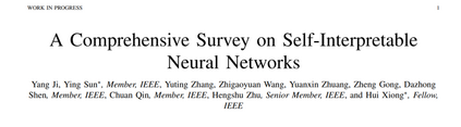 摘要—神经网络在各个领域取得了显著的成功。然而,缺乏可解释性限制了它们在实际应用中的使用,尤其是在关键决策场景中。事后可解释性(post-hoc interpretability)旨在为预训练模型提供解释,但通常面临鲁棒性和保真性的问题。这引发了对自解释神经网络(self-interpretable neural networks)的兴趣,该类网络通过模型结构本身内在地揭示预测的原理。尽管已有关于事后可解释性的调查,但关于自解释神经网络的全面系统性调查仍然缺乏。为了解决这一问题,我们首先收集并回顾了现有的自解释神经网络相关研究,并从五个关键视角对其方法进行结构化总结:基于归因的、自函数的、基于概念的、基于原型的和基于规则的自解释方法。我们还展示了具体的、可视化的模型解释示例,并讨论了它们在图像、文本、图数据和深度强化学习等多种场景中的适用性。此外,我们总结了现有的自解释性评估指标,并指出了该领域中的开放性挑战,为未来的研究提供了见解。为了支持这一领域的持续发展,我们提供了一个公开的资源,用于跟踪该领域的最新进展:https://github.com/yangji721/Awesome-Self-InterpretableNeural-Network。 关键词—可解释性;自解释神经网络;可解释人工智能;模型解释 I. 引言