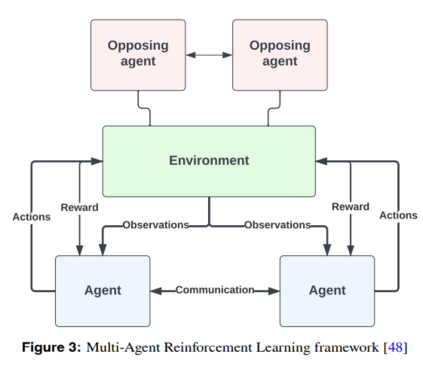 在某些条件下,强化学习(RL)能够解决 POSG [5]。在同一游戏概念中,RL 在 DeepMind 的领导下在人工智能界引起了轰动。该公司创造的人工智能 AlphaGo [7] 在与世界冠军李世石的 GO 对弈中获胜。AlphaGo 的一个特别举动让李世石大吃一惊[8],起初似乎是个失误,这可以看作是一个例子,说明人工智能不仅有能力改进以前采用的方法和程序,而且还能想出全新的方法来解决问题,无论是偶然还是有意为之。自 AlphaGo 之后,DeepMind 进一步扩大范围,创建了 AlphaStar [9],它利用多智能体强化学习,在实时战略游戏《星际争霸 II》中跻身人类玩家的前 0.2%。