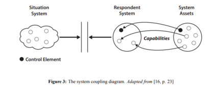 在 Lawson [16]中,系统耦合图可以举例说明基于系统资产的应答系统设计。这些资产可视为由上层系统提供,用于处理某种情况,或称为 "情况系统"。情况系统和应答系统之间的两条线说明了两个系统的接口。在这里,情境系统既为应答系统提供输入,也是应答系统行动输出的接收者。