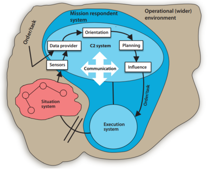 在进一步探讨布雷默的 DOODAloop(图 1)时,可将 C2 系统视为上层系统(即任务响应系统)的一部分。任务响应系统可被视为旨在影响情况的响应系统,也可被视为情况系统,按照 Lawson [16] 的观点,情况系统本身就是一个系统。因此,按照 Lawson [16] 和 Flood 与 Carson [14] 的上述推理,我们可以使用这样一种观点,即 SOI 的边界要么环绕 C2 系统及其要素,要么扩展到也环绕所设计的任务响应系统,其中包括 C2 系统及其子系统。由此可见,任务响应系统的结构是由相互关联的子系统组成的,这些子系统提供了重要的功能,以实现预期的运行。如上所述,图 1 中描述的 DOODAloop 缺乏在更广泛的背景下探索 C2 系统结构和功能的特性。
