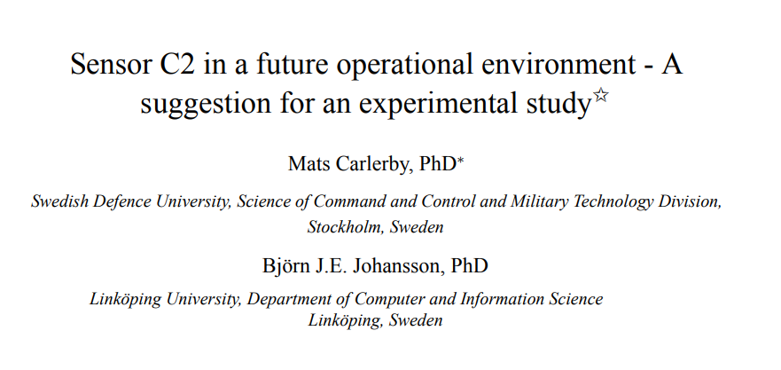 在未来的数据密集型作战环境中,威胁可能会有很大的不同。其中一个例子就是速度可达 5 马赫及以上的导弹。要单独应对这类威胁,至少需要做到两点。第一,提供适当的作战设想,考虑到未来的远程威胁。其次,能够收集、过滤、处理和理解相关数据,以便在短时间内确定优先次序并做出正确决策,这一点可能会更加重要。第三,在考虑网络战威胁时,可将这些威胁视为以光速进行。总之,在未来战场上,从直接控制的传感器到人工智能(AI)引导的传感器,现有的不同类型的传感器很可能需要高效、动态的指挥和控制(C2)。在本文中,我们提出了一项实验研究,以调查传感器指挥与控制可以集中在哪个层面、分散在哪个层面或两者结合在哪个层面,以及哪个层面似乎足以在地理和信息扩大的作战环境中及时应对威胁。