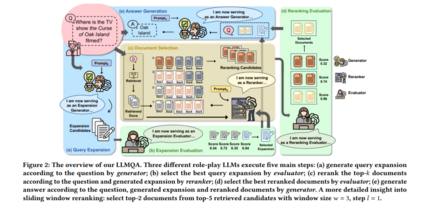 开放领域问答(ODQA)已成为信息系统研究的一个关键焦点。现有方法主要遵循两种范式来收集证据:(1)“检索-阅读”范式从外部语料库检索相关文档;(2)“生成-阅读”范式利用大型语言模型(LLMs)生成相关文档。然而,这两种方法都无法完全满足证据的多方面需求。为此,我们提出了LLMQA,一个通用框架,将ODQA过程划分为三个基本步骤:查询扩展、文档选择和答案生成,结合了基于检索和基于生成的证据的优势。由于LLMs展现出在完成各种任务上的出色能力,我们指导LLMs在我们的框架中扮演生成器、重新排序者和评估者等多重角色,将它们整合在ODQA过程中协同工作。此外,我们引入了一种新颖的提示优化算法来细化角色扮演提示,并指导LLMs产生更高质量的证据和答案。在广泛使用的基准测试(NQ, WebQ, 和 TriviaQA)上的大量实验结果表明,LLMQA在答案准确性和证据质量方面都取得了最佳性能,展示了其推进ODQA研究和应用的潜力。