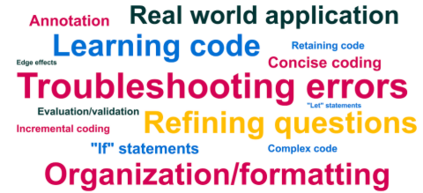 图1. 研究生学习生态模型编程时常提及的关键挑战术语