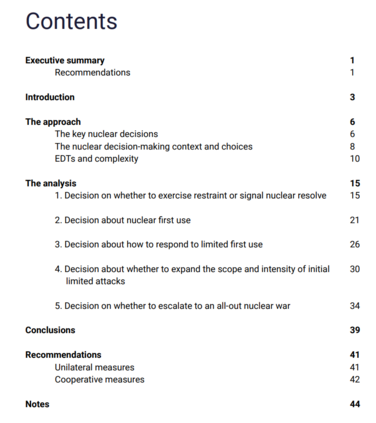 新兴技术和颠覆性技术(EDTs)之间复杂的相互作用会对核决策产生重大影响,尤其是在地区常规冲突不断升级的情况下。此类冲突可能会给政府带来一系列核决策:是否在危机中引入核因素,是否通过有限的核使用跨越核门槛,如何应对有限的核攻击,是否扩大最初有限攻击的范围和强度,以及是否升级为全面核战争。在每个决策点上,EDT 都会带来潜在的风险和回报。