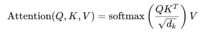 在自注意力机制中,查询(Q)与键(K)向量之间的点积计算相似度分数: