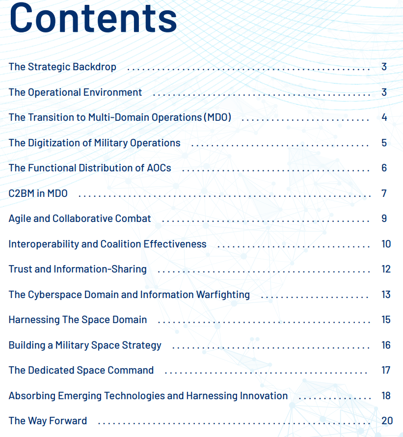 本报告通过将关键的作战范式、挑战和战略转型的推动因素相互关联,以向新的作战方式演进,综合了空军向多域作战 (MDO) 过渡的最新观点。
