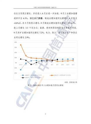 2022年是党的二十大胜利召开之年,是实施“十四五”规划关键之年。面对国内外环境变化带来的新风险新挑战,我国高效统筹疫情防控和经济发展,及时出台落实扎实稳住经济一揽子政策措施,助推重点产业链供应链堵点卡点加速打通,工业出口带动形成强力支撑,新动能带动作用凸显﹐高质量发展持续推进,工业生产承压迅速恢复,下滑态势得到及时扭转,体现出强大韧性,总体上呈现恢复回稳的增长态势,对国民经济发展的贡献支撑作用持续攀升。与此同时,当前工业经济稳增长基础仍不牢固,国内外不确定性因素进一步强化,长短期因素交织扰动产业链韧性、企业生产经营压力增加以及内外部需求不足等问题仍在。