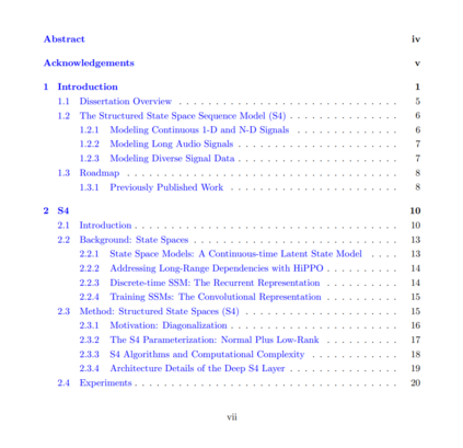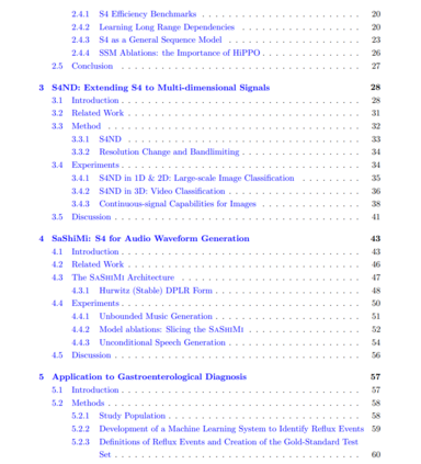 本论文开发了一套新的方法,用于使用状态空间模型对信号数据进行建模。首先,我们介绍了一种叫做S4的状态空间序列模型,作为建模信号数据的通用基础构件。其次,我们将这种建模层推广到像图像和视频这样的多维信号,产生了第一个在如ImageNet这样的大规模基准测试上的连续信号状态-of-the-art模型。接下来,我们展示了如何将S4整合到一个多尺度架构中,这使得模型能够处理极长序列的音频,包括之前未解决的关于无条件自回归生成原始音频样本的任务。最后,我们证明了状态空间建模方法对各种信号数据的广泛适用性,包括在诊断胃食管反流病中使用的阻抗传感器数据的一个真实世界应用。综合起来,这套新的方法提供了一套用于建模多样化、多维信号的通用且多功能的基础构件。