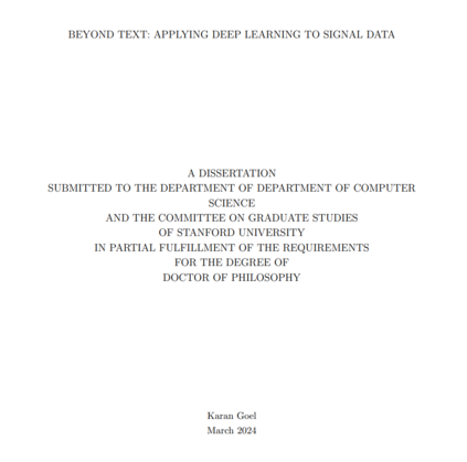 在过去的十年里,深度学习在各个应用领域取得了显著进展,这些应用范围从图像分类到语言建模。诸如自监督学习这样的序列建模原语对于自然语言处理和基因组学等领域的许多最近的突破负有重任。尽管有这些进步,现有的原语仍然难以建模从物理传感器获取的大类数据。我们将这类数据称为信号数据,它有几个独特的特征,使得建模变得具有挑战性。首先,从连续信号得到的数据的所选择的分辨率显著影响模型的训练和泛化能力。其次,信号数据通常以高速率采样,导致长或密集的数据,这需要模型具有捕获长距离依赖的强大能力。最后,信号数据高度多样化,在健康医疗、视频处理和工业感知等各个领域都有应用,这提高了为建模这些数据制定通用方法的标准。