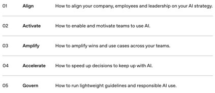 从中我们也可以提炼出 OpenAI 想要向领导者们传递的信息:对齐团队,激活培训,放大成功,加速决策,并负责任地治理。这些将成为企业在 AI 时代获得竞争优势的重要基础。