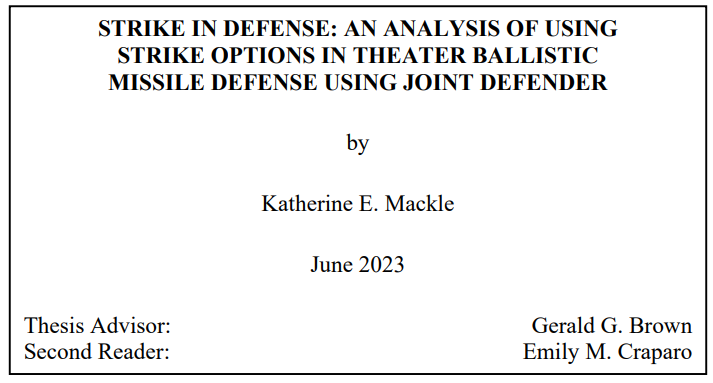 战区弹道导弹防御是美国军事战略的重要组成部分。导弹防御是一项复杂的任务,需要详细的规划。帮助规划人员制定战区弹道导弹防御计划的工具为美国提供了战略优势。联合防御(JDEF)是美国海军研究生院的一个研究小组于 2005 年开发的一种基于优化的导弹防御规划工具。在给定潜在攻击和可用防御者信息的情况下,JDEF 可为对手提供最佳最坏情况下的预期最佳攻击和对方防御计划。自 2005 年创建以来,JDEF 的功能不断扩展,以更好地应对现代导弹战。除其他发展外,JDEF 现在还具有在发射前打击导弹综合体的能力。在两个场景中演示了 JDEF 使用具备打击能力的拦截器的情况:假想来自伊朗的小规模攻击和来自朝鲜的大规模攻击。在伊朗的小规模攻击场景中,JDEF 返回了最优防御方案,最大预期损失降低了 97.2%。JDEF 为大规模北朝鲜场景返回了一个最佳防御计划,可将最大预期损失降至 89.3%。这两种防御计划都严重依赖具有打击能力的拦截器。