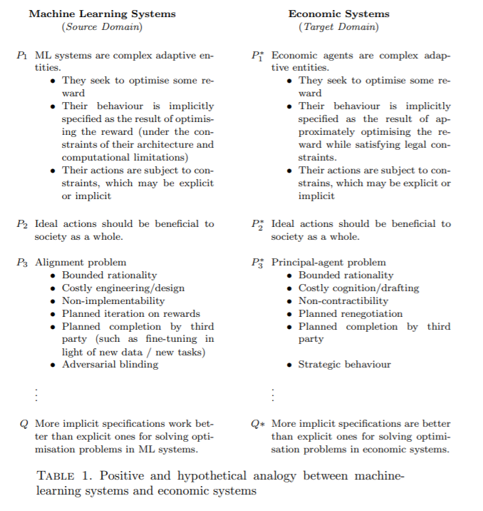 机器学习系统和经济实体之间有一个相似之处,即它们都是自适应的,而且它们的行为或多或少是明确规定的。人工智能与经济实体的行为最相似的领域似乎是道德良好的决策,但如何在人工智能系统中准确实现道德行为,仍是一个悬而未决的问题。探讨了类比这两个复杂的系统,我们建议一个清晰的理解这一明显的类比可以帮助我们前进在社会经济领域和人工智能领域:经济学已知的结果可能会帮助在人工智能安全可行的解决方案,但是也知道导致AI可能会通知经济政策。如果这种说法是正确的,那么最近人工智能深度学习的成功表明,在解决这类问题时,更多的隐式规范比显式规范更有效。