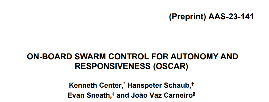 Orbit Logic和CU合作开发了自主和响应性星群控制(OSCAR)解决方案的设计和初始原型--旨在创建一个星载软件解决方案,使卫星集群能够参与协作规划和执行策略,以支持任务,与单个精致的航天器平台相比,卫星团队可以提供性能、响应性和弹性优势。