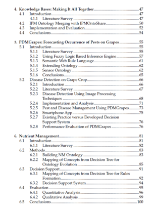 最近,我主持了搜索引擎设计、页面排名算法开发、基于本体的搜索设计以及电子协商协议开发的研究。我的一位研究学者Archana Chougule与我一起参与了一个基于本体的决策支持系统的设计和开发,该系统用于综合农作物管理。农业研究人员和专家每年都会产生有用的知识,并开发专家系统和决策支持系统。如果所有知识都能以容易理解和在研究中心间共享的格式呈现,那将是非常有用的。这种情况激励了这个项目,致力于开发将农业知识从文本转换为本体的技术,并通过决策支持系统为葡萄种植者提供这些知识。使用本体,知识的背景可以被有效地表示,并且可以通过自动化设备共享。使用开源技术如Java、Android和低成本硬件设备(如Arduino微控制器)开发了用于综合病虫害和营养管理的决策支持系统。我的另一位研究学者Sheetal Vij对自动化协商的各种电子协商协议进行了深入研究。随着网络技术的进步和普及,使传统的协商定价机制自动化、智能化和高效化变得越来越重要。代表人类进行协商的软件代理的行为可以通过它们以决策函数形式的策略来确定。预测合作伙伴在协商中的行为在近年来一直是一个活跃的研究方向,因为这将提高适应性协商代理的效用增益,并更快地达成协议或寻求更高的利益。尽管协商实际上是一项在没有人工干预的情况下自动化的非常复杂的活动,但这是一种尝试,提出一种预测对手行为和影响协商过程的各种因素的架构。这个概念是,关于谈判者、他们的个人行为和动态的信息可以被配备有适应性能力的软件代理使用,这些软件代理能够从过去的协商中学习,并协助选择适当的协商策略。因此,这是一个我们必须拥有计算机程序/软件代理/代理代表我们进行协商的时代。