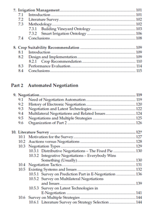 介绍了基于本体论的综合农作物管理决策支持系统的设计与开发。 讨论了将文本形式的农业知识转换为本体论的技术。 侧重于对各种电子谈判协议进行广泛研究,以进行自动化谈判。 提供了一个用于预测对手行为和影响谈判过程的各种因素的架构。 本文主要面向计算机科学与工程、农业科学和信息技术领域的研究生、专业人士和学术研究人员编写。