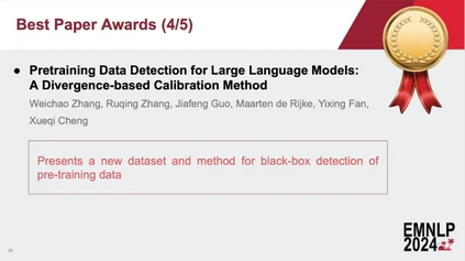 转载机器之心报道****编辑:张倩、蛋酱中科院计算所、中国科学院大学、中关村实验室合作的一篇论文拿到了 EMNLP 2024 最佳论文奖。刚刚,EMNLP 2024 论文奖项结果出炉了! EMNLP 2024 会议近日在美国迈阿密盛大开幕,现场热闹非凡。