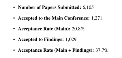 本届会议收到了前所未有的 6395 篇论文,其中有效投稿 6105 篇,比上一年足足增加了 1196 篇。经过了严格的审稿过程,主办方保持了与往年差不多的论文接收率,最终有 1271 篇主会议论文被接收。