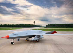 MQ-25 T1,左翼下有空中加油站,在坡道上。