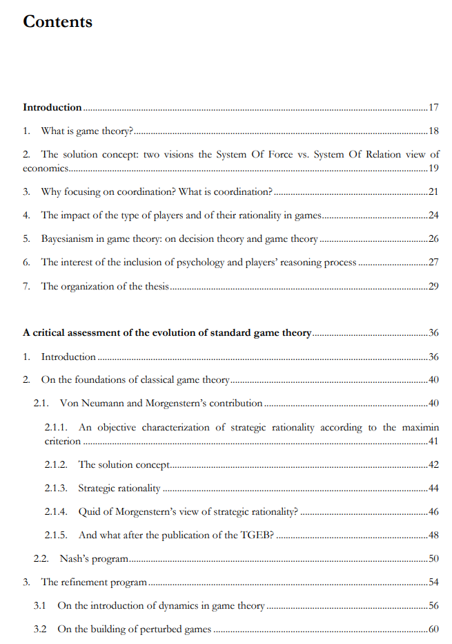 本论文的目的是研究参与者可能实际对非合作博弈实施“解决方案”的条件,即存在均衡的条件,引导参与者找到相关解决方案的推理过程,以及它们如何收敛到相同解决方案的识别。的确,经典博弈论中博弈的数学定义所包含的均衡和解的具体说明,假设存在解,并关注这种解存在的数学条件,而没有对具体过程或“力”导致这个解决方案(Giocoli,2003 年)。尽管博弈论的目的是从规范和积极的角度为博弈“提出”解决方案(Sugden,2001),但均衡的存在是假设的(同上),以定义理性博弈。博弈论者通常对智能体交互过程中的条件缺乏兴趣,以确保解决方案的存在。博弈不被视为一个过程,而只是一种战略选择的代表。从这个角度来看,Sugden (2001, p. 128) 提到“决策的经济理论家不愿意面对实证问题。该理论最持久的特征似乎不是任何统一的解释原则,而是致力于一种先验的探究模式。”