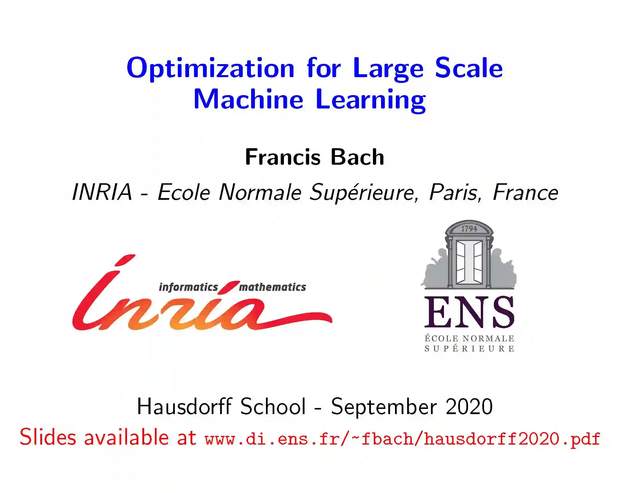 本文推荐来自法国INRIA Francis Bach研究员述《大规模机器学习与凸优化》,205页ppt系统性讲述了大规模机器学习优化与凸优化算法,非常干货。