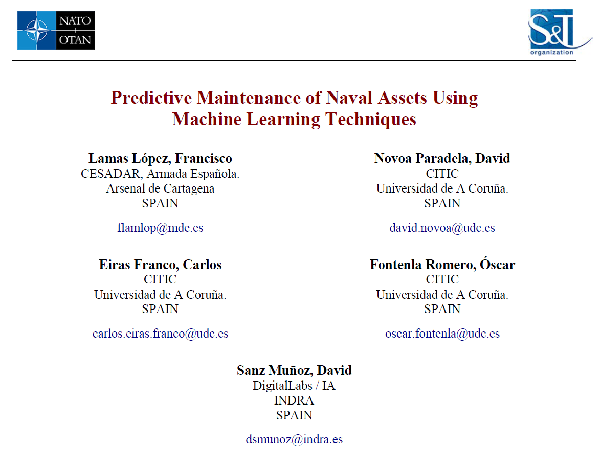 在工业资产运行过程中出现的异常情况可能表明存在退化和故障,随着时间的推移,会导致不期望的行为、运行条件的丧失以及系统的最终崩溃。预测性维护技术负责监测系统的状态,以便在初始阶段对这些异常情况进行检测,从而以最佳方式安排维护任务。本文介绍了一种基于机器学习的人工智能技术的海军资产预测性维护解决方案。为此,使用了由船舶实时收集并通过控制中心传输的传感器(温度、压力等)的信息。所开发的系统(SOPRENE)能够从我们军舰上的发动机的历史数据中预测不同的故障模式或异常运行状况的发生。此外,该系统的使用可扩展到大型舰队,该解决方案已使用Spark分布式环境来实现,以促进预测的分布式计算。