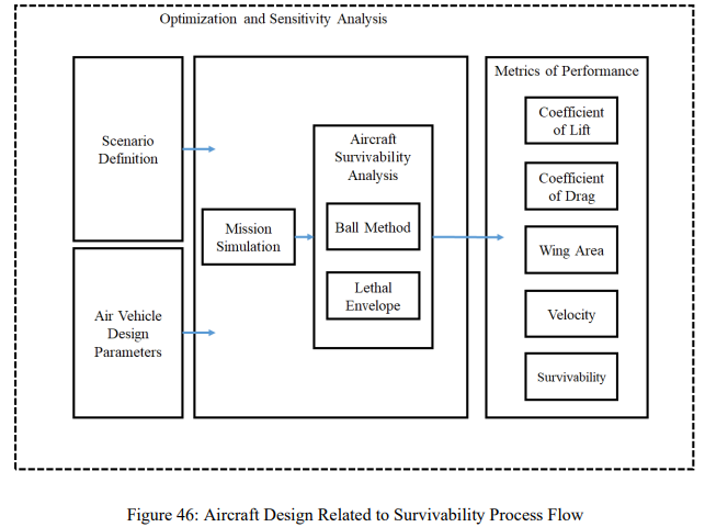 本论文通过提出一种飞机生存能力评估方法,将生存能力与现代无人机应用、新出现的威胁、多无人机战术和无人机设计联系起来,回答了上述研究问题。考虑并模拟了飞机在遇到现代无人机对抗措施时的生存能力。对无人机的性能指标进行了建模和模拟,以描述对提高飞机生存能力敏感的飞机设计参数。通过从现代多无人机战术角度评估飞机的生存能力,本研究试图为无人机设计师提供更完整的生存能力衍生设计标准的视野。
