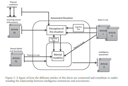 本论文的主要贡献在于,它建立并描述了军事情报机构和评估之间的偶然联系,通过利用使用规则和信念系统及其对心智模型的影响,从而对与军事情报相关的情况的感知。认知偏差,从而影响给定的评估。本文通过采用制度分析与发展(IAD)框架,努力使情报研究更具普遍性。 IAD 的元理论语言是解释和描述机构对情报评估的影响的有前途的途径。
