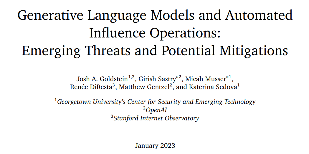不过,生成式语言模型(简称 "语言模型")也可能存在负面应用。对于希望传播宣传信息--旨在塑造观念以促进行为者利益的恶意行为者来说,这些语言模型带来了自动创建有说服力和误导性文本以用于影响力行动的希望,而不必依赖人力。对社会而言,这些发展带来了一系列新的担忧:那些试图暗中影响公众舆论的人可能会开展高度可扩展、甚至极具说服力的活动。