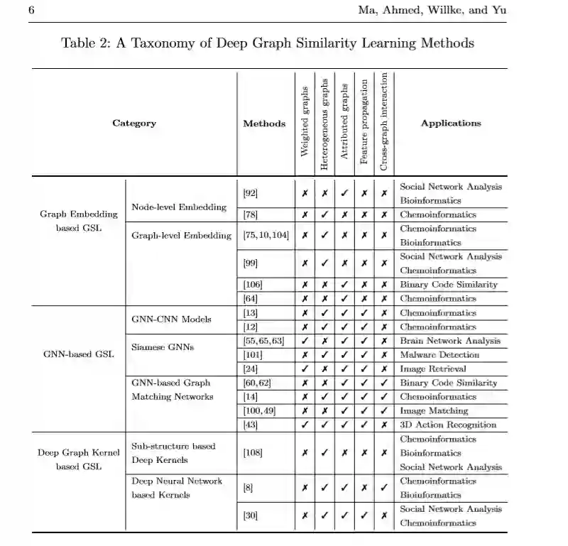 在特征空间上学习足够的相似性度量可以显着确定机器学习方法的性能。从数据自动学习此类度量是相似性学习的主要目的。相似度/度量学习是指学习一种功能以测量对象之间的距离或相似度,这是许多机器学习问题(例如分类,聚类,排名等)中的关键步骤。例如,在k最近邻(kNN)中分类[25],需要一个度量来测量数据点之间的距离并识别最近的邻居;在许多聚类算法中,数据点之间的相似性度量用于确定聚类。尽管有一些通用度量标准(例如欧几里得距离)可用于获取表示为矢量的对象之间的相似性度量,但是这些度量标准通常无法捕获正在研究的数据的特定特征,尤其是对于结构化数据。因此,找到或学习一种度量以测量特定任务中涉及的数据点的相似性至关重要。