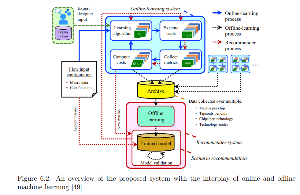 对于工业高性能处理器的LSPD,作者提出了一种新的协作推荐系统方法,从许多用户(系统)和项目(旋钮配置)的互动(CAD运行)中学习隐藏特征。为了应对 "二重性 "的诅咒,项目特征被分解为项目属性(旋钮)的特征。综合模型预测了每个用户-项目对的QoR。对于特定应用的加速器的HLS,提出了一系列神经网络模型,其演化顺序为所提出的混合共享转移学习模型。转移学习的目的是利用从以前的问题中获得的知识;然而,由于系统和旋钮的异质性,该模型需要区分哪一块知识应该被转移。所提出的ML方法旨在不仅像设计师那样使用经验知识,而且最终通过提供替代性的见解和建议新系统的优化可能性来帮助设计师。作为这个方向的努力,我开发了一个人工智能增强的DSE工具,利用上述模型,为新的目标系统生成推荐的旋钮配置。通过这项研究,我调查了下一代人工智能增强的DSE的潜力,目的是促进CAD社区的安全协作工程,而不需要分享机密信息和知识产权。