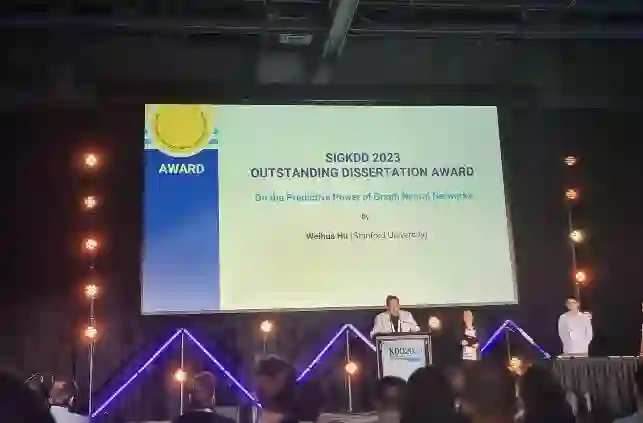 随着会议的进行,各大奖项也开始逐一揭晓。其中来自香港中文大学、香港科技大学(广州)、东南大学、同济大学的研究者获得了研究方向最佳论文奖;来自谷歌的研究者获得了应用数据科学方向最佳论文奖;斯坦福大学(于今年 1 月获得学位)博士 Weihua Hu 获得杰出博士论文奖;创新奖颁给了斯坦福大学计算机科学学院教授 Jure Leskovec;不列颠哥伦比亚大学的四位研究者获得了本次大会的时间检验奖。