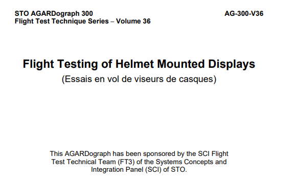 本 AGARDograph 的主要目的是概述航空系统头盔式显示器 (HMD) 的测试和评估,包括这些系统的典型问题和测试执行中的风险。此外,它还旨在提高人们对 HMD 系统进行飞行测试所需的初始鉴定活动的认识。虽然重点是头盔式飞机显示器,但本 AGARDograph 中描述的许多方面同样适用于头戴式显示器,后者可能会更广泛地应用于民用领域。其目的是为测试界提供一份长期参考指南,为未来的测试项目提供参考。本 AGARDograph 介绍了标准术语、评级标准、典型测试技术以及设计 HMD 和测试此类系统的注意事项。AGARDograph 探讨了 HMD 开发和飞行测试的以下关键领域,包括两个案例研究,这将进一步突出这些领域: