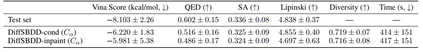 表 2 对来自 Binding MOAD 测试集的目标口袋生成的分子的评估
