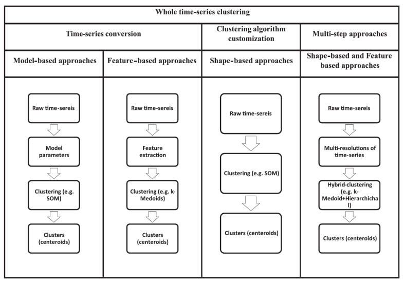 深度表示聚类描述了一类使用神经网络来辅助聚类任务的模型。主要方法结合了表示学习(通常通过自动编码器)和聚类损失,以驱动形成集群友好的表示。由于该过程通常涉及表示学习,因此 DRC 非常适合高维、复杂的数据,因为它可以映射到低维表示。这在计算上和避免维度灾难方面都很有用。由于这项研究的聚类任务涉及长而复杂的时间序列,DRC 是一种自然的方法。最后,M. Cuturi 和 M. Blondel 最近的研究工作产生了动态时间扭曲 (DTW) 损失的可微版本,称为 soft-DTW [23],这很重要,主要有两个原因。首先,时间序列不能与标准欧几里得距离函数在相似性方面进行适当比较。取而代之的是像 DTW 这样的东西,或者像 soft-DTW 这样的松弛,对于解释形状的相似性是必要的。其次,由于 DRC 是一种基于神经网络的方法,因此训练中使用的所有损失函数必须是可微的,以便通过反向传播促进参数优化,这是标准 DTW 所缺乏的特性。由于这些原因,softDTW 的开发非常适合创建可以适当处理时间序列数据的 DRC 算法。