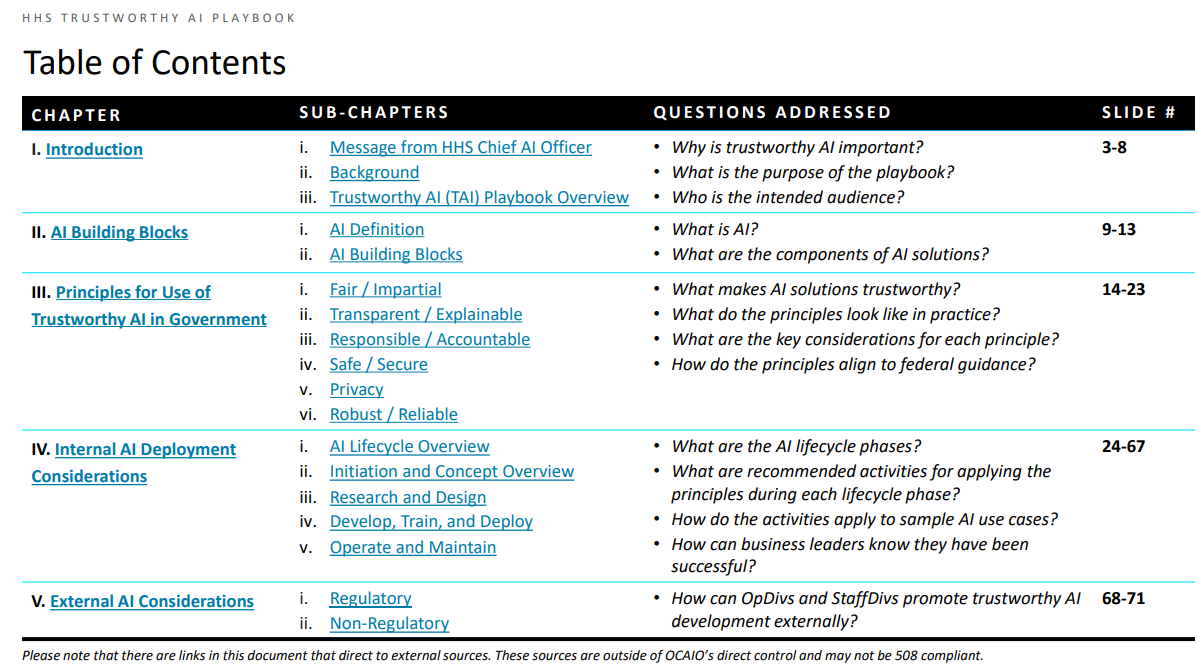 该手册旨在指导HHS领导层围绕TAI制定政策,并评估与AI投资相关的风险,同时也强调了项目和项目经理如何恰当地将其纳入,在构建AI解决方案之前与团队合作,监督项目的整个生命周期,并降低风险。