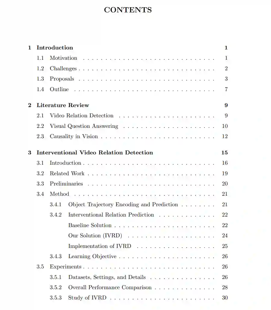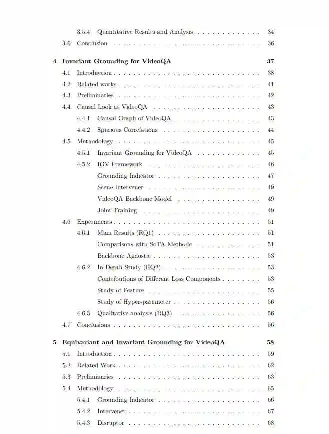 经过十年的蓬勃发展,视频理解领域的发展已到达一个关键节点,单纯依赖海量数据和复杂架构已不再是应对所有场景的万能解决方案。普遍存在的数据不平衡问题阻碍了深度神经网络(DNNs)有效学习潜在的因果机制,导致在遇到分布变化(如长尾不平衡和扰动不平衡)时性能显著下降。这一现实促使研究人员寻求替代方法,以捕捉视频数据中的因果模式。为了应对这些挑战并提高DNNs的鲁棒性,因果建模作为一种原则应运而生,旨在揭示观察到的相关性背后的真实因果模式。本论文聚焦于语义视频理解领域,探索因果建模在推动两项基础任务——视频关系检测(Video Relation Detection, VidVRD)和视频问答(Video Question Answering, VideoQA)中的潜力。主要贡献提出干预式视频关系检测方法(IVRD)针对VidVRD中关系长尾不平衡的问题,我们提出了一种名为IVRD的干预式视频关系检测方法。尽管尾部关系信息丰富,但由于其在数据集中稀缺,难以预测。具体而言,我们以分层方式构建了一组关系原型,迫使关系推理模块专注于实体间动态交互的视觉内容,而非依赖对象与关系标签之间的虚假相关性。通过引入因果推理,IVRD为在长尾不平衡情况下提升视频理解提供了有前景的方向,使模型能够更好地泛化到现实场景中,其中罕见或不频繁的关系可能对场景的整体理解至关重要。提出视频问答的不变基础模型(IGV)我们提出了视频问答的不变基础模型(Invariant Grounding for VideoQA, IGV),这是一个模型无关的学习框架,旨在解决答案环境中虚假相关性带来的负面影响。IGV通过定位问题关键(因果)场景来发现因果推理模式。具体而言,它利用因果场景与答案之间的关系在环境变化时保持不变的特性,并强调移除因果场景会导致回答问题失败。通过定位这些关键场景,IGV迫使VideoQA模型专注于准确推理所需的视觉内容,同时屏蔽环境的负面影响,从而显著提升骨干模型的推理能力。提出视频问答的等变基础模型(EIGV)为了进一步提升鲁棒性和视觉可解释性,我们在IGV的基础上提出了等变基础模型(Equivariant Grounding for VideoQA, EIGV)。EIGV额外引入了等变性,鼓励回答过程对因果场景和问题的语义变化敏感。相比之下,不变基础模型要求回答对环境场景的变化不敏感。这两种正则化方法协同工作,区分因果场景与环境,同时通过呈现视觉-语言对齐提供更高的透明度。通过结合不变和等变基础模型的优势,EIGV为VideoQA创建了一个更鲁棒且可解释的框架。提出视频问答的时空合理化方法(STR)我们发现了视频问答的时空合理化方法(Spatio-Temporal Rationalization, STR),以解决长视频和多对象样本(即复杂VideoQA)的低准确率问题。由于当前的VideoQA实践(包括预训练模型,如SeVila [158])大多使用短视频片段(约15秒)和少量实体(约2个)进行训练,它们在复杂视频(超过80秒和5个对象)上的迁移能力较差。其原因是长视频不可避免地引入了大量冗余和虚假相关性,因为存在大量与问题无关的环境对象。针对这一挑战,我们首先强调了建模问题关键时间点和空间对象的重要性,然后引入了时空合理化(STR)方法,利用可微分选择模块通过跨模态交互自适应地收集问题关键的时间点和对象。结合更合理的候选答案解码策略,STR有效识别了与问题无关的帧和对象作为因果模式,从而提升了预测性能,尤其是在复杂场景中。局限性本论文的一个局限性在于对识别出的因果场景的评估。在整个研究中,我们依赖问答(QA)的整体性能作为发现因果场景质量的间接指标,其依据是更准确的因果场景定位可能提供更丰富的问题-关系视觉线索,从而提升QA性能。然而,必须承认,基于因果场景的直接定量测量将提供更具说服力的见解。遗憾的是,由于缺乏人类级别的定位标注,当前工作中尚未实现此类测量。因此,未来的研究将致力于建立一个专门针对因果场景的评估基准,涉及对支撑回答过程的视觉元素进行人工标注。这一举措将有助于对因果场景发现进行更全面和严格的评估。总结我们的贡献拓展了因果建模在语义视频理解中的前沿,赋能AI系统掌握因果模式,并在具有挑战性的视频理解任务中提升性能。
