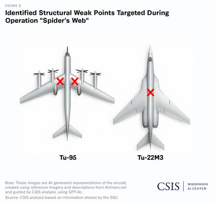 乌方利用博物馆展品训练机器学习模型,精准识别翼下挂架/油箱接缝等结构弱点。行动影像证实:这些预设打击点(如图3)与最终命中部位完全吻合,使轻量化FPV无人机通过引燃高危部位实现毁伤倍增。