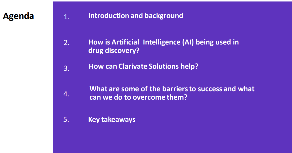 将讨论药物发现研究人员如何使用 Clarivate 支持 AI 的生命科学解决方案套件,加速临床前开发、节省时间和财务并加快上市。