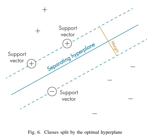 这种算法的目的是在N维空间中找到一个超平面,在保持最大余量的同时将数据点分开,也就是各个类的点之间的最大距离。