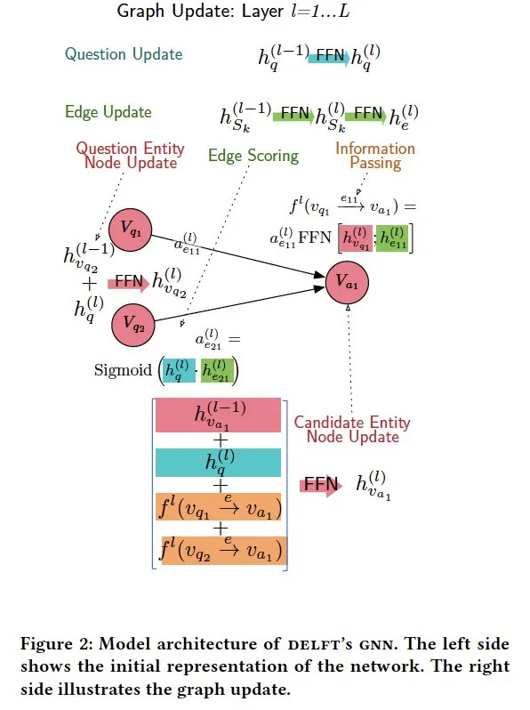 摘要:我们介绍了Delft,一个事实问答系统,它将知识图问答方法的细微和深度与更广泛的free-文本结合在一起。Delft从Wikipedia构建了一个自由文本知识图,以实体为节点和句子,其中实体同时出现做为边。对于每个问题,Delft使用文本句子作为边,找到将问题实体节点链接到候选对象的子图,创建了密集且覆盖率高的语义图。一种新颖的图神经网络在free-文本图上进行推理-通过沿边句子的信息组合节点上的证据-以选择最终答案。在三个问答数据集上的实验表明,Delft能够比基于机器阅读的模型、基于BERT的答案排序和记忆网络更好地回答实体丰富的问题。Delft的优势既来自于其free-文本知识图谱的高覆盖率--是DBpedia关系的两倍多--也来自于新颖的图神经网络,它基于丰富而嘈杂的free-文本证据进行推理。