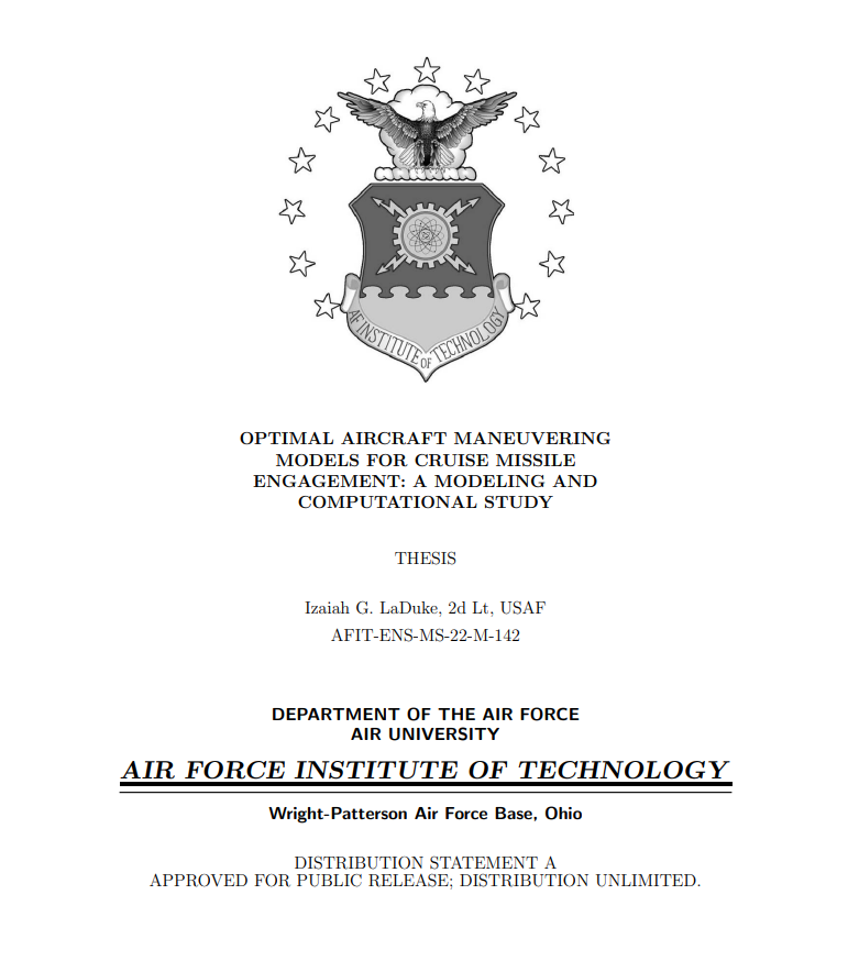 鉴于对手军事能力的威胁和扩散的增加,这项研究试图开发合理准确和可计算的模型,以最佳方式操纵航空器拦截巡航导弹攻击。该研究利用数学编程对问题进行建模,并以代表(时间)差分方程系统的约束条件为依据。研究首先比较了六个模型,这些模型对速度和加速度约束有不同的表述,同时分析了静止目标的情况。多航空器、多固定目标交战问题与箱体约束条件(MAMSTEP-BC)模型产生了卓越的整体性能,并通过替代数学编程模型的增强进行了进一步分析,以便在利用有效的机动序列方面创建可行的飞行轮廓。最后,对MAMSTEP-BC模型进行了修改,以操纵飞机来对付移动目标。