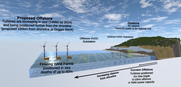 英国代表了世界领先的能源经济,推动了对海上风电的战略投资趋势[6],在2019年底,英国的可再生能源电力容量达到47.4GW,比上一年增加了3GW,即6.9%。海上风电场(OWF)的发电量也达到31.9TWh,与前一年相比增长了19.6%。2019年,英国陆上和海上风能生产的总能量占9.9%,然而在2021年第一季度,这一比例已经增加到25.6%,显示出能源来源的转变,有明显的倾向于风力发电[7], [8], [9]。此外,在2020年,英国通过运行中的海上风电场生产了约6.8GW,未来的能源生产增长轨迹包括预先计划和正在建设的同意项目,预计将达到27.2GW;涡轮机装机容量增加74.7%。这要归功于皇家地产公司第四轮海上风电租赁的启动,在英格兰和威尔士近海有7GW的新海床权,可以为600万个家庭供电[10]。苏格兰皇家地产公司也批准了他们的第一轮海上风电租赁,有可能产生超过每个苏格兰家庭的能源需求,每年抵消600万吨二氧化碳,并允许在苏格兰海上风电领域投资约80亿英镑[6]。在大陆层面上,2050年欧盟委员会议程估计需要250至450吉瓦的海上风力发电,以将全球变暖限制在工业化前水平的1.5℃以内,并估计未来全球电力需求的30%可由海上风力发电提供[11,12]。为了满足2050年欧盟委员会议程的高端要求,这将相当于增加40,910个11兆瓦的涡轮机,需要覆盖75,250平方公里的区域,预计到2030年海底电缆的资本支出将达到161亿美元和250万公里[13]。