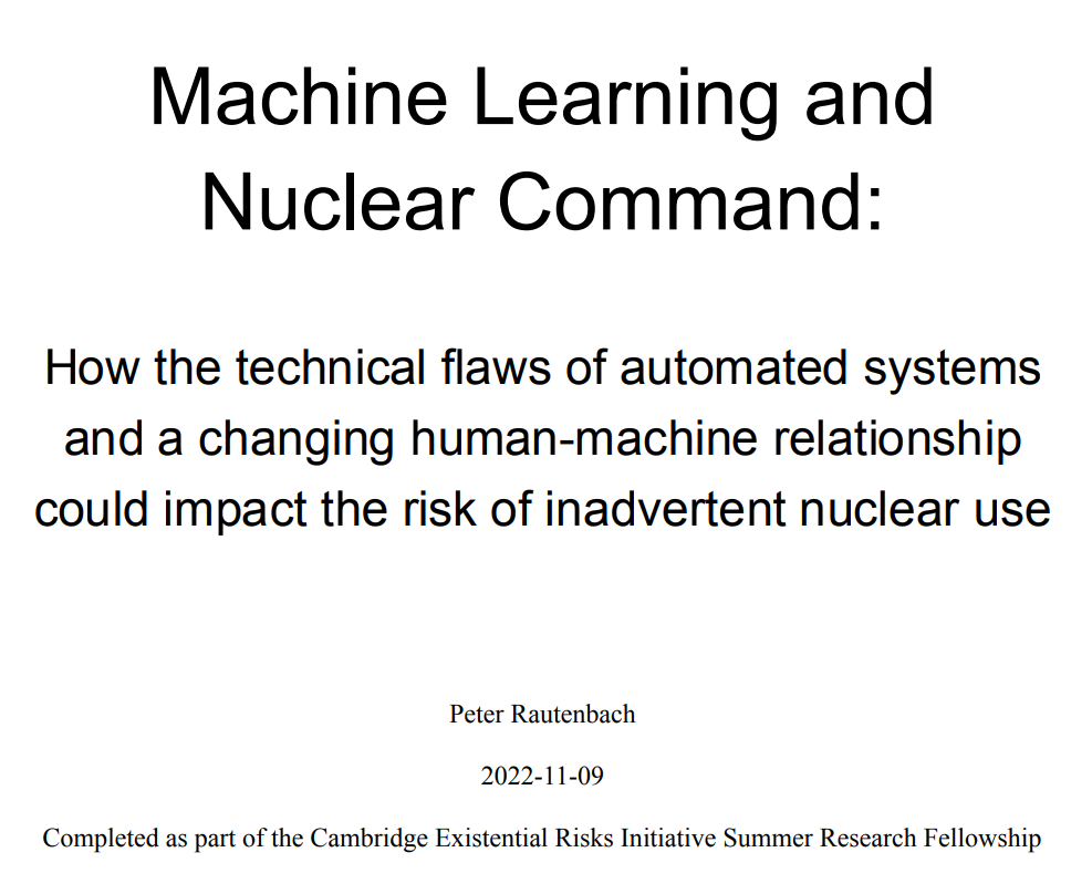 本报告旨在阐述问题,分析可能的解决方案,并介绍旨在支持有影响力的项目和发展的资助机会。然而,与学术论文更相似的是,本报告的主线强调了 ML 为 NC3 带来的自动化可能会对核决策产生重大影响。通过提高自动化程度,我们实际上是在将权力 "预先 "下放给机器智能系统,而尽管机器智能系统可以带来诸多优势,但它们却不可避免地存在缺陷。从某种意义上说,它们的不完美本身并不会破坏任何支持集成 ML 的论点。它们要么与人类操作员并肩作战,要么取代人类操作员,而人类操作员也是有缺陷的,其能力也是有限的。然而,当我们考虑自动化将如何影响人机关系时,依赖有缺陷的机器的真正危险就显而易见了。