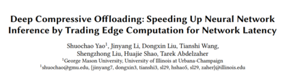 研究人员在网络传感领域的顶级研究出版平台 Sensys 2020上发表了他们的工作《深度压缩卸载:通过交易边缘计算加速神经网络推理以提高网络延迟》,并获得了最佳论文奖。