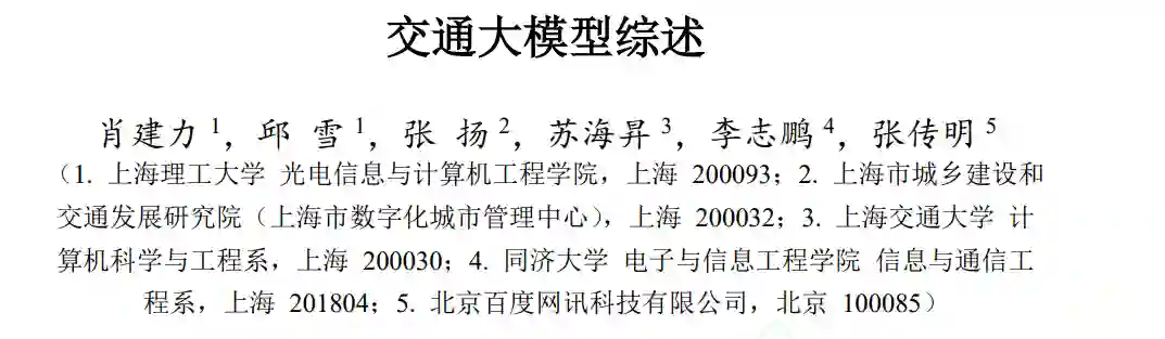 摘 要:对大模型技术在交通领域的促进作用进行了深入探讨,展现了其在改善交通管理和 控制、提高交通安全以及推动自动驾驶技术发展方面的巨大潜力;系统阐述了大模型、视觉 大模型、多模态大模型的基本概念及发展历程,针对部分交通大模型,总结了它们的模型架 构和训练方法等,探讨了大模型在交通领域的主要应用,例如交通管理和控制、交通安全和 自动驾驶。研究结果表明:在交通管理和控制方面,大模型的应用改善了交通信号控制和交 通状态预测等问题,并为城市交通管理带来了新的可能性,这不仅减少了交通拥堵,还降低 了环境污染;在交通安全方面,相比于传统模型,大模型的应用显著提高了交通事故分析和 预测能力,通过对历史事故数据的深入学习,模型能够识别出事故高发区域和时段,从而采 取预防措施,提高了交通安全指数;在自动驾驶领域,传统模型向多模态自动驾驶模型的转 变,不仅提高了自动驾驶系统的决策和环境适应能力,还为用户提供了更加安全、舒适的驾 驶体验。不仅挖掘了大模型技术在当今交通领域中的潜力和价值,还为实现更加智能、高效 的交通系统提供了有用的建议,如降低交通大模型的计算成本、提升模型的实时性和可靠性 等。 关键词:智能交通;通用大模型;交通大模型;交通管理和控制;交通安全;自动驾驶
