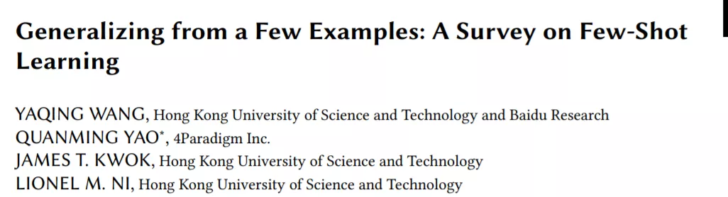 【导读】现有的机器学习方法在很多场景下需要依赖大量的训练样本。但机器学习方法是否可以模仿人类,基于先验知识等,只基于少量的样本就可以进行学习。本文介绍34页小样本学习综述《Generalizing from a Few Examples: A Survey on Few-Shot Learning》,包含166篇参考文献,来自第四范式和香港科技大学习的研究学者。